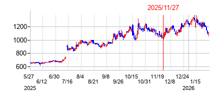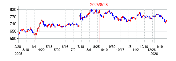 PER:19.5 PBR:6.99 利回り:1.51% 株価:825円