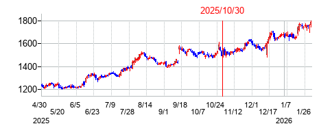 PER:24.6 PBR:1.63 利回り:1.49% 株価:1605円