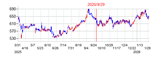 PER:17.1 PBR:3.79 利回り:1.53% 株価:653円