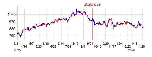 PER:13.1 PBR:2.49 利回り:3.98% 株価:869円