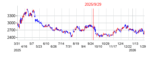 権利最終日2025年1月29日 権利落ち日2025年1月30日 分割比率1:2 効力発生日2025年2月1日