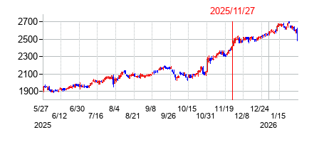 PER:20.3 PBR:3.81 利回り:-% 株価:2561円