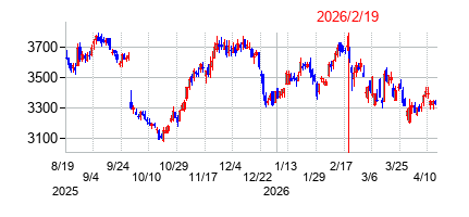 PER:45.68 PBR:2.2 利回り:0.86% 株価:3455円