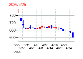 <注意>上場後に株式分割や株式併合を行っている場合、分割比率や併合比率で調整した株価で株価チャートを描画しています。そのため目盛の株価と公募価格や初値が異なる場合があります。